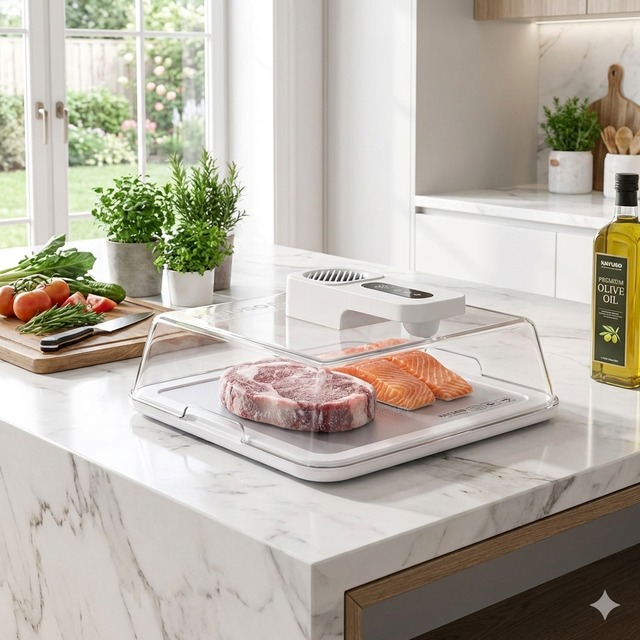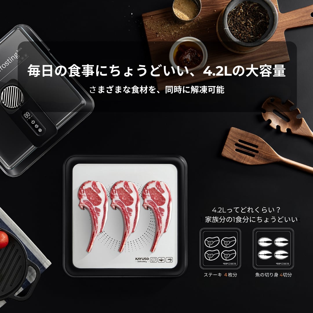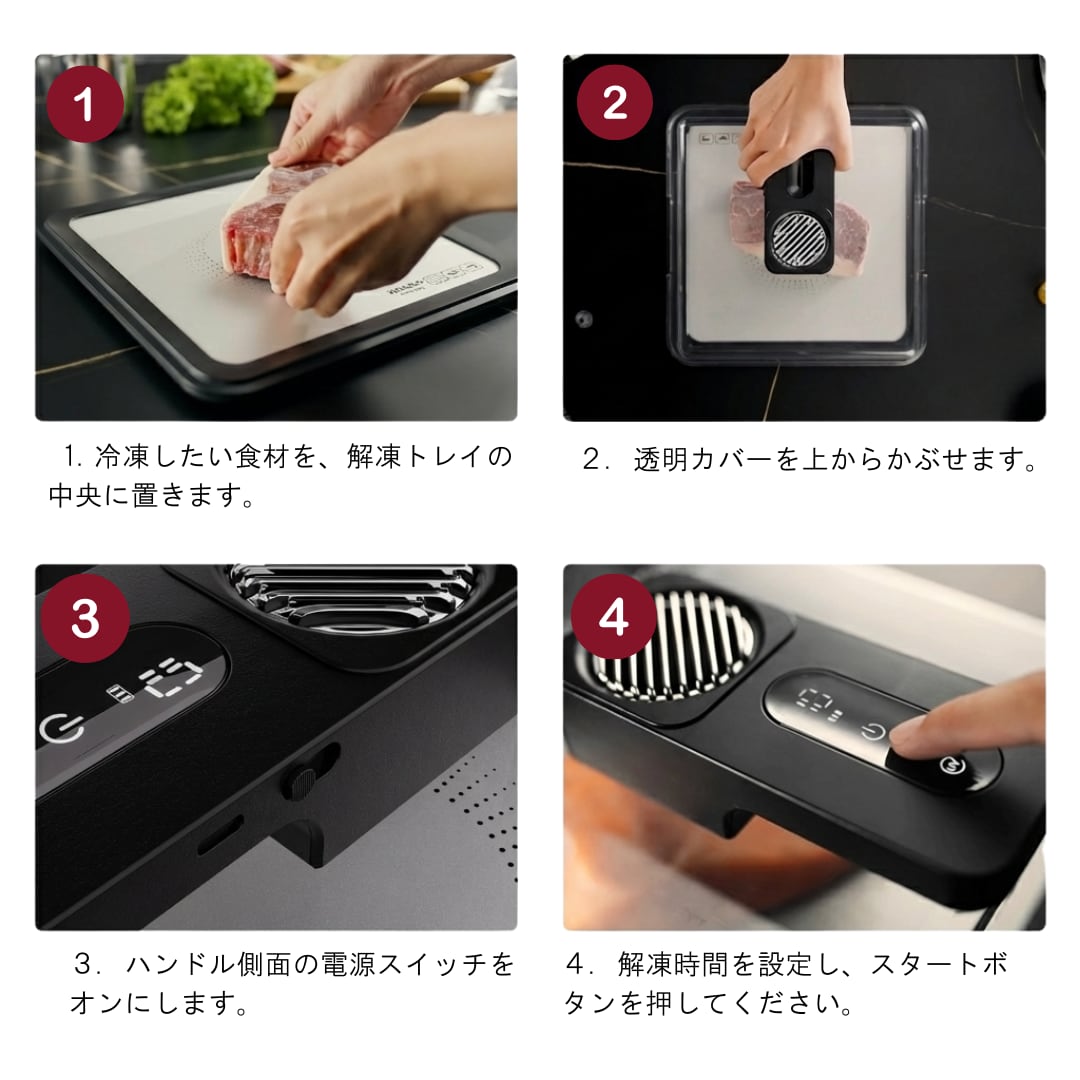 料理をより心地よく。手間を減らし、食材の鮮度を守る。忙しい毎日のキッチンにゆとりと安心をプラスする次世代の解凍ツールです。