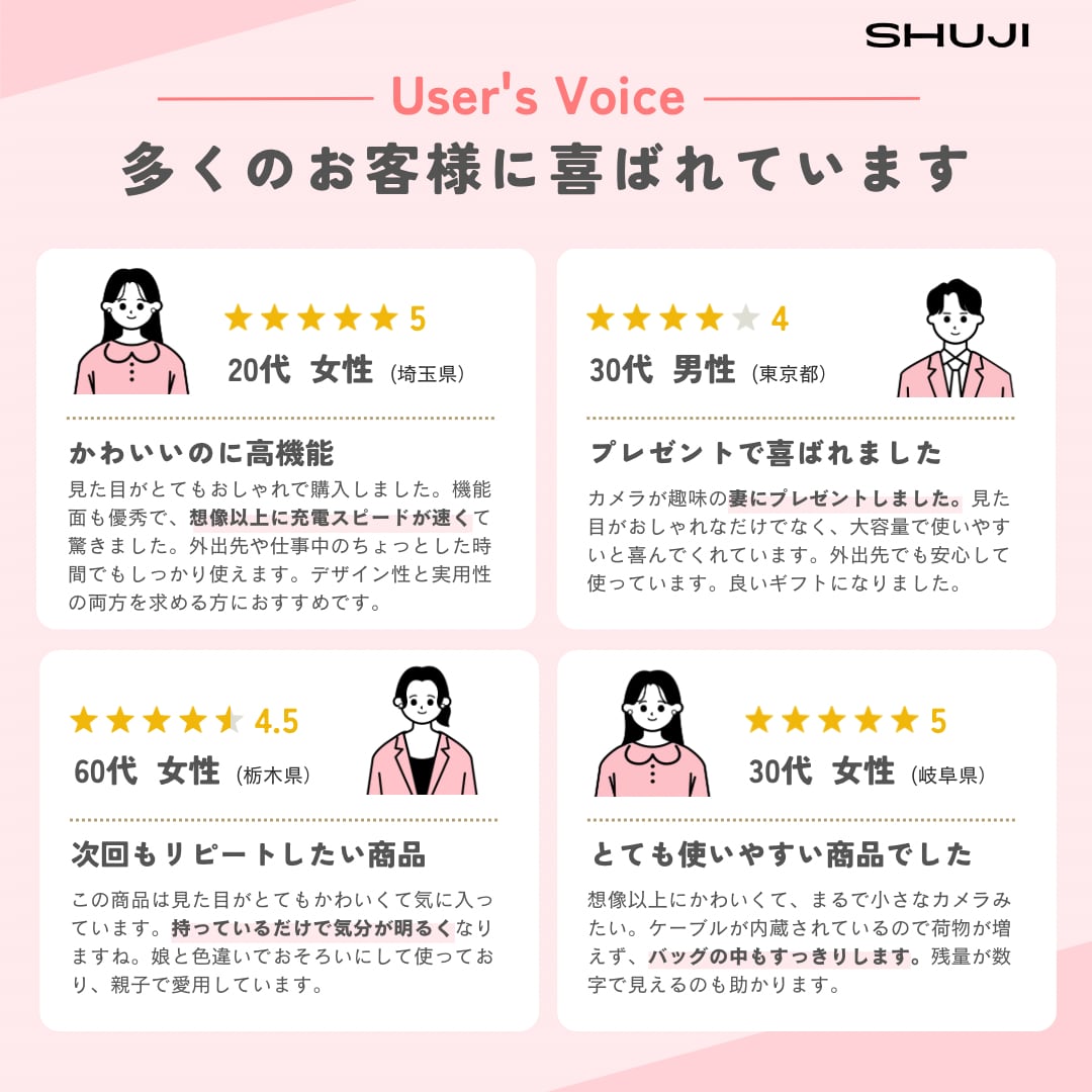【SHUJI】ミニカメラモバイルバッテリー【かわいいのに頼れる】