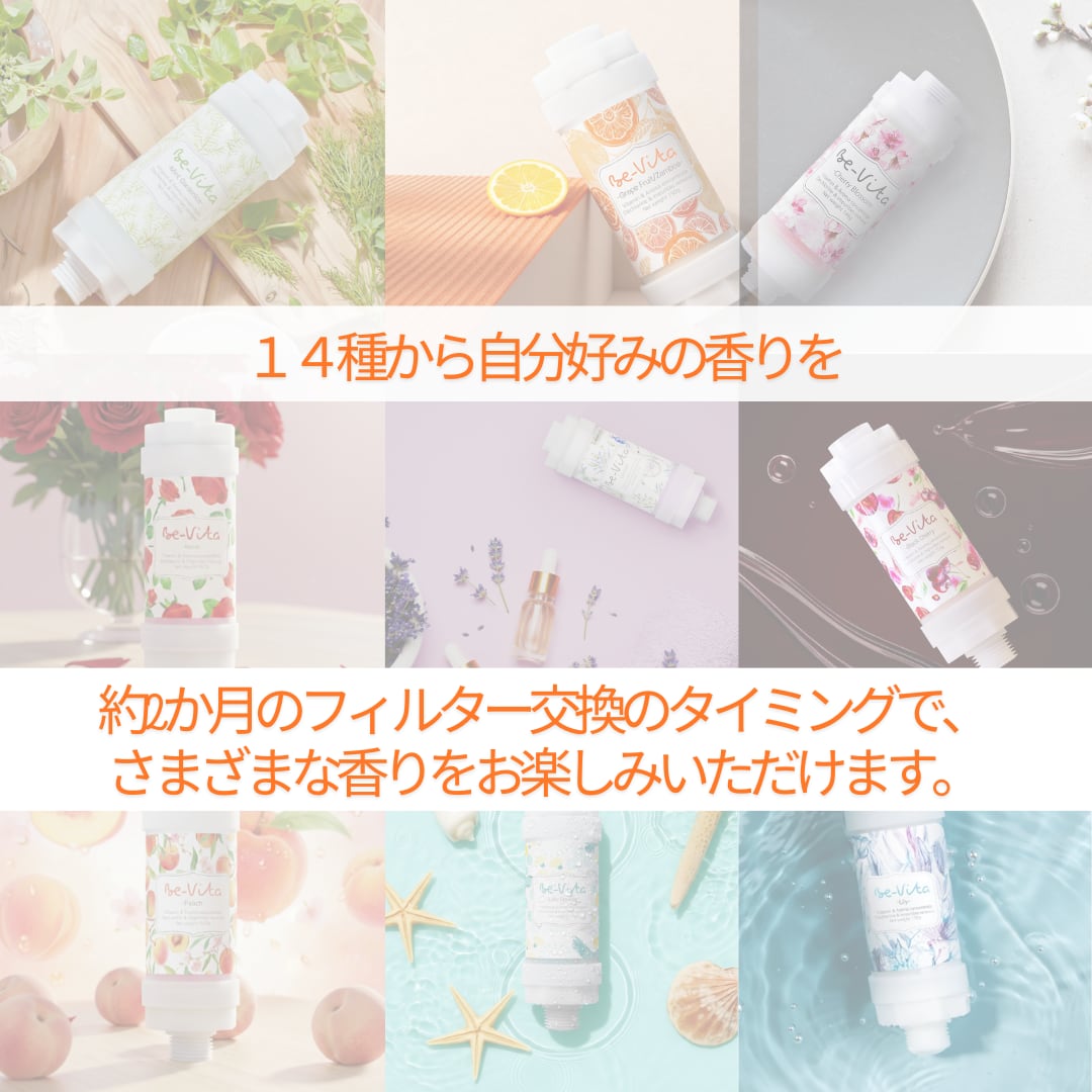 Be-Vita(ビー・ヴィタ)は、10年以上の歴史と累計20万本以上の販売実績を持つDONEXが、お客様の声から開発したシャワーフィルターです。浴室いっぱいに広がる豊かな香りと、肌おもいのやさしい水が、あなただけの癒やし空間を演出します。